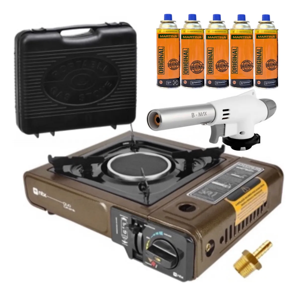 Acompanha 5 Cargas de Refi 1 Maçarico 1 adaptador 1 Maleta 1 Fogareiro Duo cerâmica Conheça o Duo Ceramik, fogareiro horizontal da NTK com queimador de cerâmica! Um fogão portátil com ótima qualidade e fácil utilização é um equipamento indispensável para cozinhar em campings, trilhas, motorhome, vans, kombis e até mesmo em casa. O modelo Duo Ceramik Flex Fuel é uma excelente opção. É todo feito em aço esmaltado com epóxi e queimador em cerâmica para maior comodidade. O produto vem com um apoio de panela removível, o que facilita a limpeza após o uso. É muito fácil de utilizar, para acender, nada de fósforos: você utiliza o sistema piezo de ignição automático, garantindo mais segurança e praticidade para o uso. Ao acender, você pode regular a chama para não gastar mais gás do que o necessário. Para facilitar ainda mais, o modelo é Flex Fuel, ou seja, aceita tanto o botijão quanto o Campgás como combustível. Lembrando que para usar o gás tradicional, é preciso acionar a trava de segurança, que controla a saída de gás. Para limpeza do seu fogareiro, só é necessário o uso de uma esponja macia e pano úmido. Quando não for mais utilizar, não se esqueça de retirar o cartucho de gás e manter longe de fontes de calor. Pesa 2,2kg e acompanha prática maleta de transporte para armazená-lo e carregá-lo com segurança. Se você está buscando um fogão portátil flex fuel para preparar suas refeições em casa ou durante suas viagens, conheça o Fogareiro Duo Ceramik NTK com ignição automática. ATENÇÃO: Esse produto não acompanha cartucho de gás ou botijão. Não é considerado um item inflamável. • Fogareiro Duo Ceramik com ignição automática • Com apoio de panela e chama regulável • Produzido em aço esmaltado com epóxi especial e base revestida com enamel atóxico • Queimador em cerâmica Informações gerais: • Material: Aço esmaltado com epóxi especial e base revestida com enamel atóxico queimador em cerâmica • Dimensões: 35 x 33 x 9cm • Consumo de gás: 145g/h • Marca: NTK